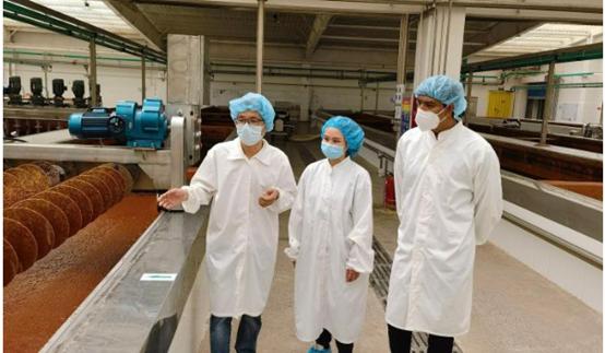 槐茂技术中心副总曹宝忠还邀请林精美谢民两位在华留学生品尝槐茂刚刚磨好的酱, 印度尼西亚在华留学生林精美称,自己家乡也有辣酱,但制作过程比较简单。而中国甜面酱的生产,其工艺和流程要繁复得多。
