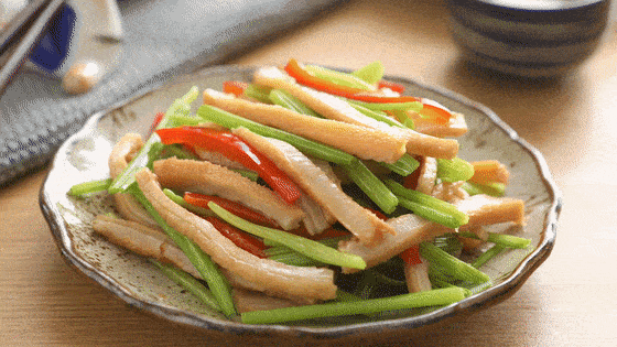 芹 菜 炒 肚 丝