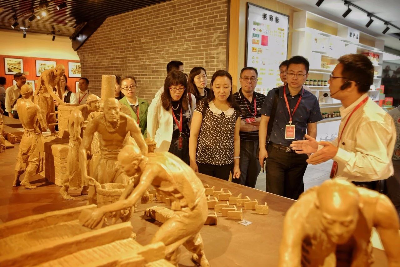 让专家团及经销商嘉宾们尤为震撼的是 “槐茂甜面酱古法酿造工艺再现雕塑群”,雕塑群由46个人物,50余口酱缸,马车、井棚若干组成,整体长度达18米。通过这一件件形象逼真的雕塑,嘉宾们逐一了解了槐茂老匠人从汲水、和面、制曲到日晒夜露、成品出缸的槐茂甜面酱古法酿造全过程。参观现场,专家团不仅为形态生动的雕塑称奇,更为槐茂老匠人的传承与坚守由衷赞叹!